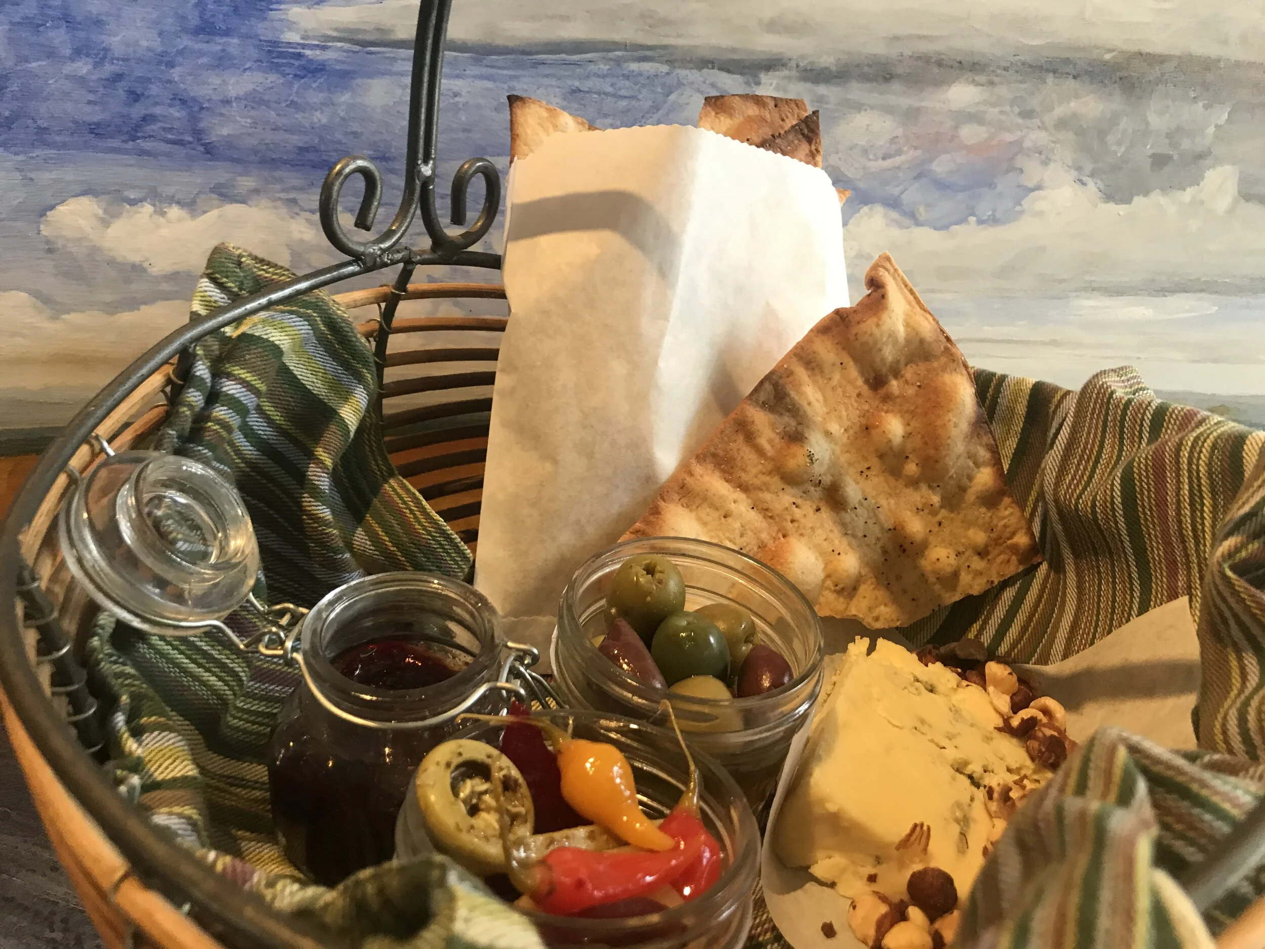 Headed to a winery, park, bike tour, or hike? Maybe a casual evening at home on the lawn with a bottle of wine? Order a picnic basket. Includes 4 oz brie, house flatbread crackers, olives, fruit preserves, pickles, and roasted hazelnuts. (Basket not included.)